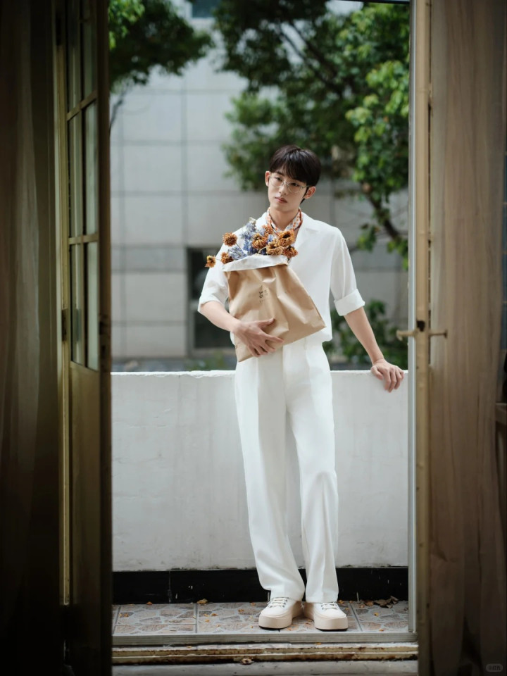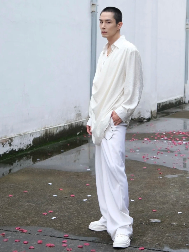 白敬亭则喜欢用白色西装裤来打扮自己,这也是一件万能单品,而且可以穿得特别松弛。两个单品都可以选择不要那么紧身的款式,相对来说就精彩很多。