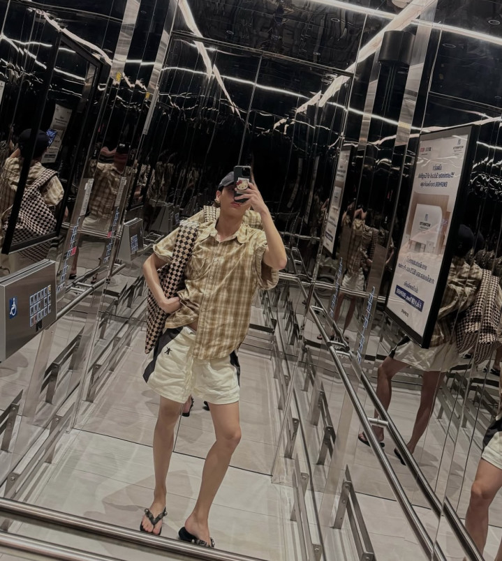 白色短裤也是很多人的爱,夏天不要太适合了。搭配格子衬衫就是最好看又清爽的做法。像他这样,哪怕黄色衬衫选的是做旧的款式,但是你依旧会觉得非常复古。